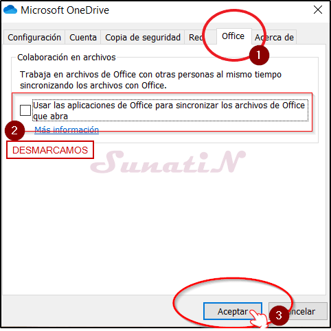 - DESMARCAMOS el check de la opción «Usar las aplicaciones de Office…» y damos click en «Aceptar».