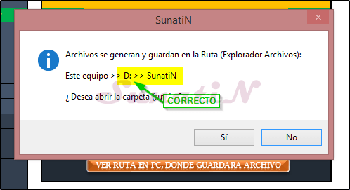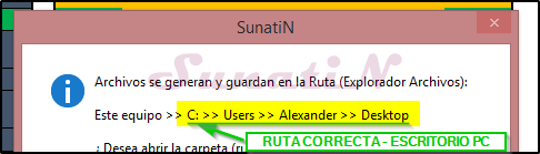 - EJEMPLO: En mi PC tengo una carpeta de trabajo «SunatiN» en la unidad «D:» (usted puede colocar cualquier nombre).