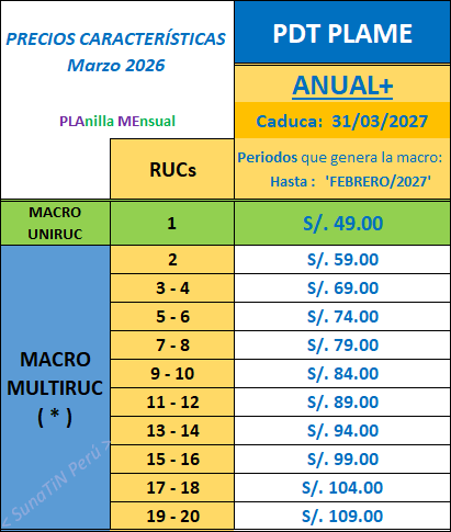 ➥ Macros validas para TODO DECLARANTE A SUNAT (Empresas Privadas, Entidades del estado, Municipalidades, ONGs, etc.)