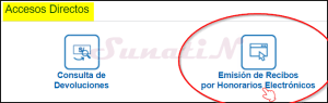 - FORMA 1 de acceder, es en sección «Accesos Directos», damos click en icono «Emisión de Recibos por Honorarios Electrónicos»